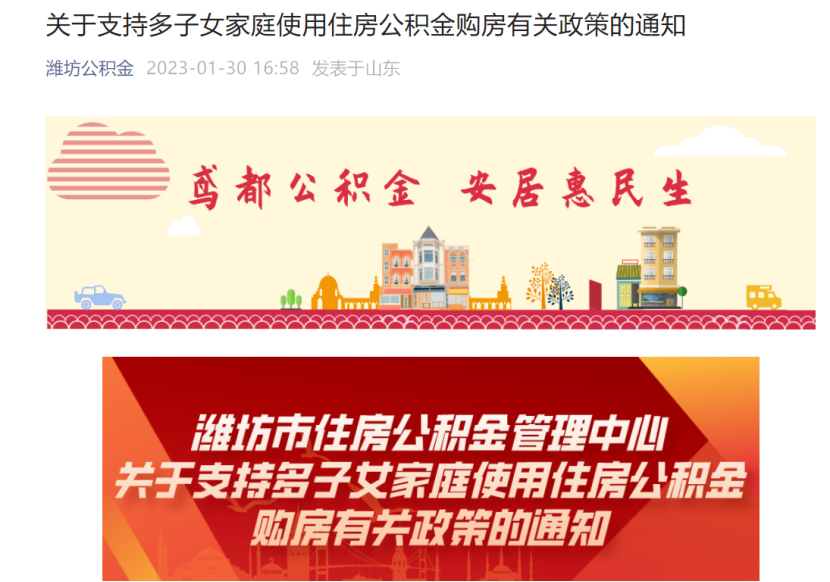 潍坊住房公积金管理中心亦出台政策,从2月1日起,潍坊市购买首套自住住房的多子女家庭,住房公积金贷款额度上限在最高贷款额度基础上提高20万元。