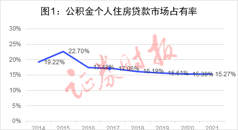 公积金贷款市场占有率也呈现类似特征,从2015年末的22.7%下降至2021年末的15.3%,说明公积金贷款在房贷中的作用逐年变小。