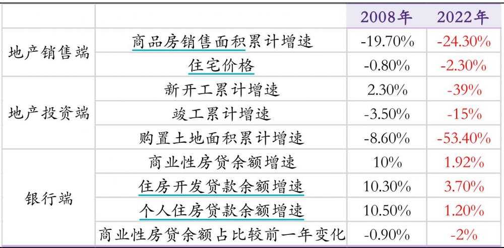 (2008年和2022年房地产压力对比,来源:华鑫证券)