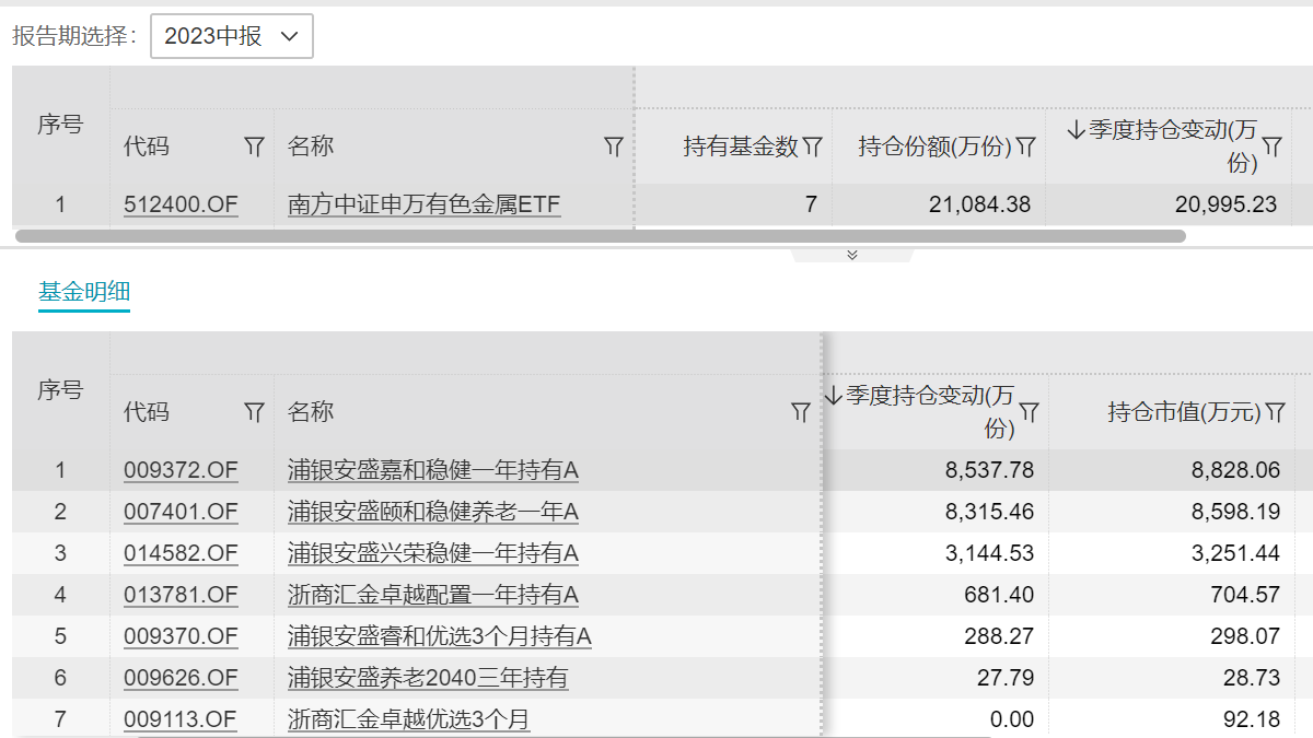 从持有基金份额的季度变化看,南方中证申万有色金属ETF、广发中证传媒ETF、国泰中证光伏产业ETF在二季度被FOF增持较多。而国泰中证军工ETF、富国中证军工龙头ETF等军工赛道ETF则遭到减持。此外,鹏华中证酒ETF和华夏上证科创板50ETF尽管在二季度整体被净申购较多,但也遭到FOF产品的抛售。