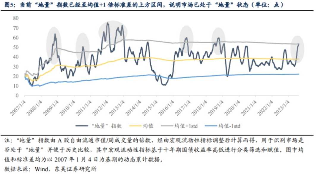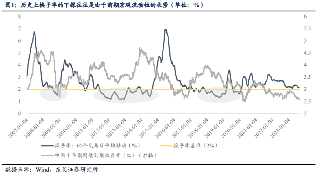 数据显示,“地量”判定指标(以换手率为代表)与宏观流动性存在显著的相关性。在宏观流动性偏紧的时期,“地量”更易显现,而流动性宽松后,“地量”现象则有所缓解。因此,在评估市场是否处于“地量”状态时,需综合考虑宏观流动性的因素。