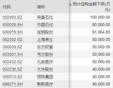 值得注意的是,医药生物和化工等行业在回购力度上居于前列。数据显示,8月份回购方案中资金总额下限过亿的上市公司达到了61家,其中荣盛石化的回购金额下限高达10亿元,中国石化紧随其后,回购金额下限为8亿元。此外,宝钢股份、上海莱士、东方财富、韦尔股份、九安医疗等公司的回购金额下限也均超过5亿元。