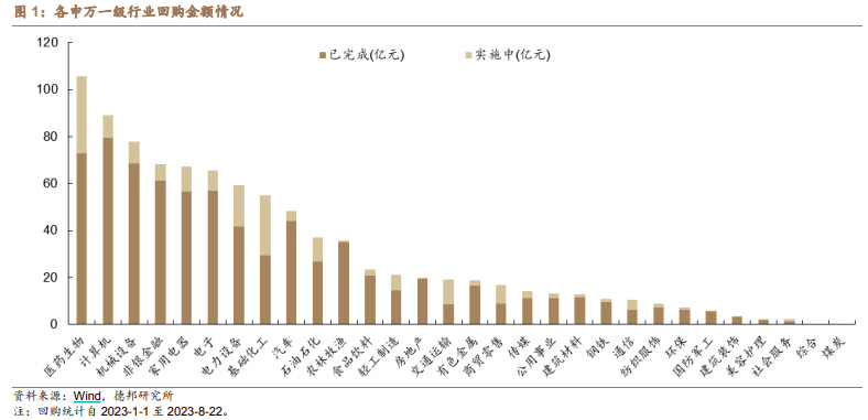 德邦证券的研报资料显示,从已发生回购的金额和占流通市值比角度看,医药生物、计算机、机械设备、非银金融、家用电器、电子、电力设备、基础化工、农林牧渔、汽车等行业在回购金额和流通市值占比上均表现出色。同时,商贸零售、轻工制造、钢铁、环保、美容护理等行业虽然预期回购金额不大,但流通市值占比较高。