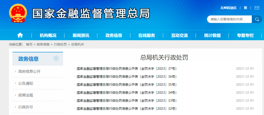 12月1日,国家金融监督管理总局对农业银行、建设银行、中信银行、民生银行、渤海银行、兴银理财、人保资管、陆家嘴国泰人寿、阳光财险等多家金融机构及其高管人员开出22张罚单,总罚没金额超过3亿元。此次处罚涉及多项违法违规事实,包括高管准入管理违规、关联贷款管理不合规、重大关联交易信息披露不充分等。