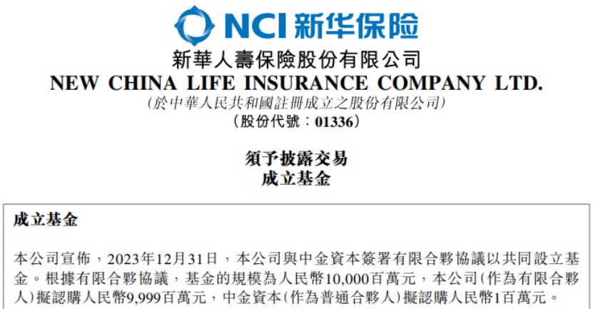 新华保险董事会已审议通过相关议案,但设立基金还需履行基金备案等监管手续,具体实施情况尚存不确定性。新华保险表示,此次合作旨在借助中金资本的专业优势,拓展投资渠道,挖掘投资机会,实现资产多元化管理,符合公司业务发展需求及股东利益。