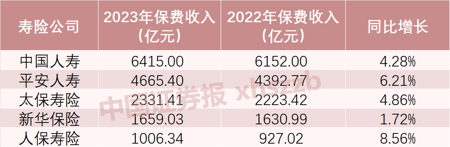 至此,A股五大上市险企2023年的保费收入数据已全部出炉。据统计,这五大险企在2023年共实现了2.69万亿元的保费收入,同比增长5.21%,全部实现了正增长。