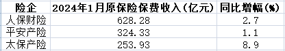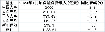 A股五大上市险企2024年首月保费收入揭晓