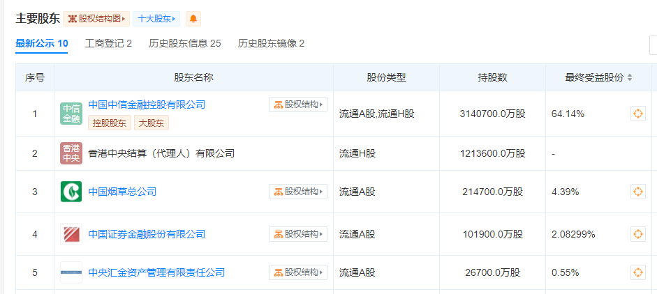 中信银行强调,本次权益变动并未改变公司的控股股东和实际控制人。