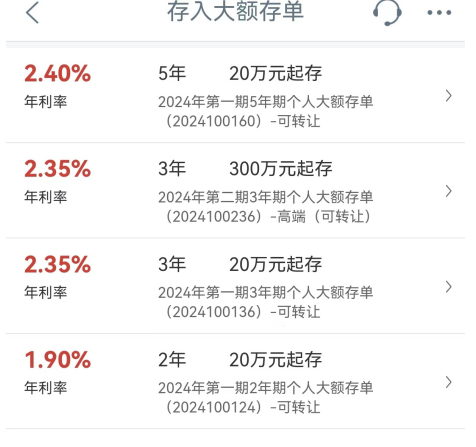 招商银行东城支行的理财经理表示,去年下半年以来,该行就已停售3年期和5年期大额存单,现在存款利率整体呈下调趋势,一般规模较大的银行不会发售太长期限的大额存单。在招行APP中,在售的大额存单产品多为短期限,利率也相对较低。