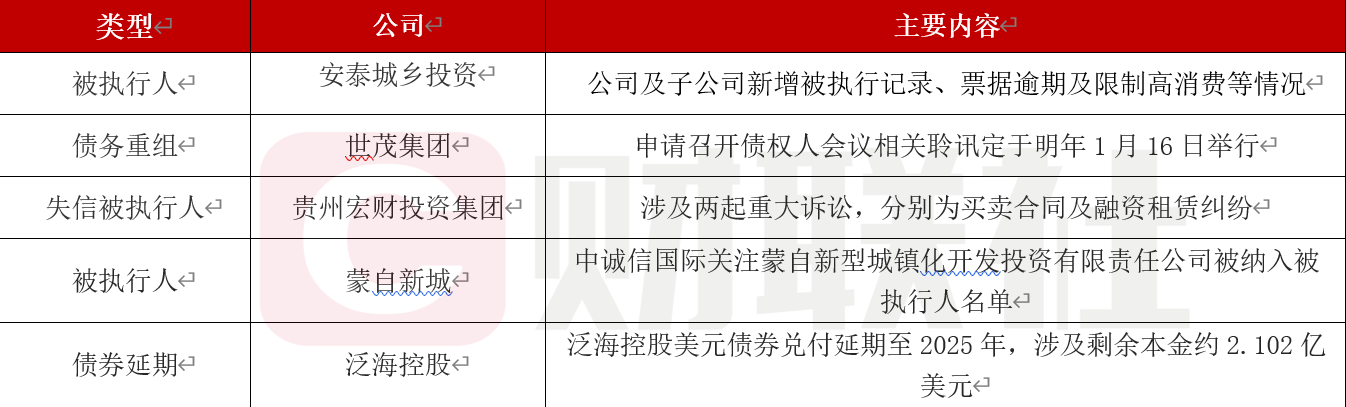 【多家企业信用状况引关注:安泰城乡投资、世茂集团等频现被执行记录及债务问题】