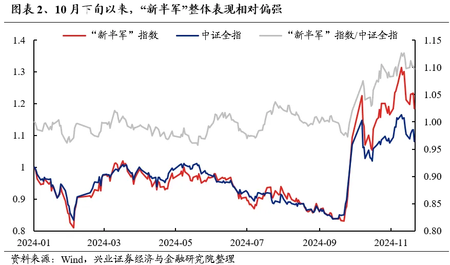 近期“新半军”(新能源、半导体、军工)表现偏强,投资者关注度明显提升。兴业证券认为,“新半军”关注度提升反映出市场对明年其实现困境反转的预期在不断强化。因此,投资者可关注这一方向。