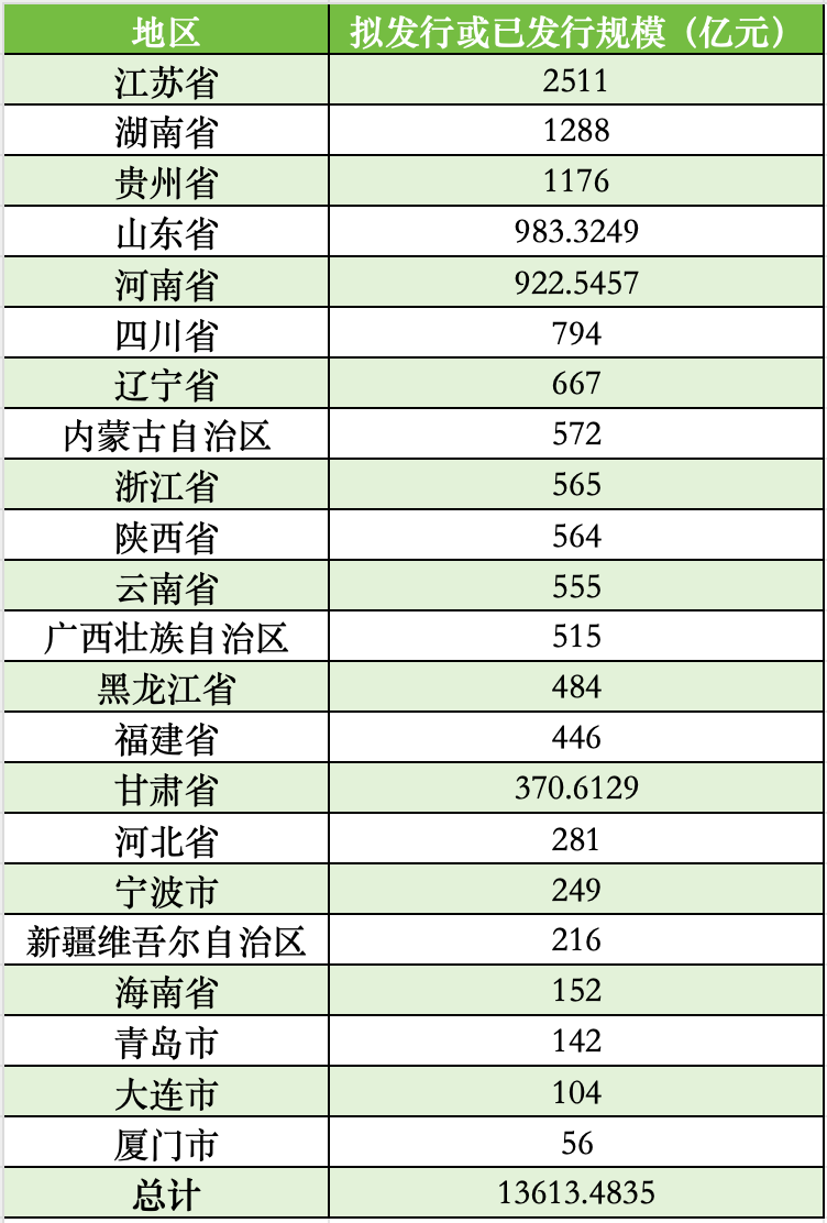 其中,江苏省、湖南省、贵州省的拟发行或已发行额度较高,均超过千亿元。山东省、河南省、四川省等地的额度也超过500亿元。这一大规模再融资专项债券的发行,旨在置换存量隐性债务,降低地方政府债务风险。