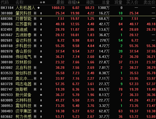 人形机器人概念股也表现抢眼,人形机器人指数上涨超6%,位居概念板块涨幅榜前列。特斯拉机器人官方账号发布的视频展示了Optimus机器人的最新进展,能完成更复杂精细的动作。华泰证券认为,人形机器人放量的关键在于通用性,灵巧手是实现通用性的核心。