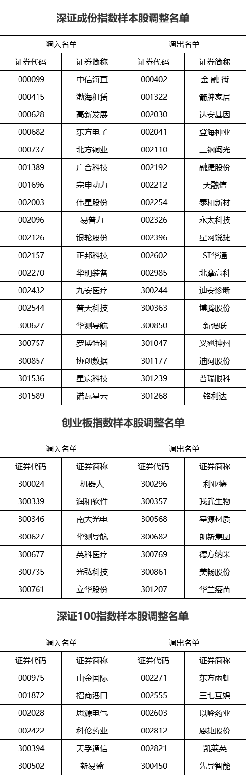 作为资本市场的重要风向标,深证成指、创业板指和深证100等指数的样本股调整,一直备受市场关注。此次调整将进一步提升指数的准确性和权威性,为市场提供更加可靠的投资参考。