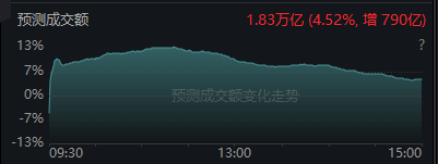 全市场超4600只个股呈现上涨态势,逾200只个股涨停或涨幅超过10%。沪深两市全天成交额达到1.79万亿元,较前一交易日放量784亿元。