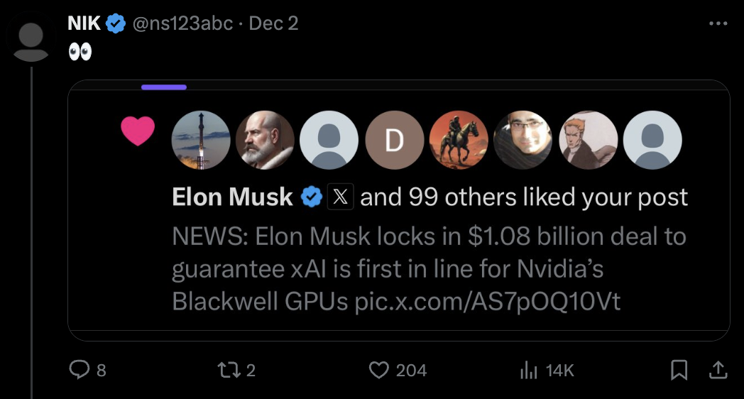马斯克旗下的人工智能初创公司xAI向英伟达订购GB200 AI芯片,旨在增强超级计算集群Colossus,xAI估值已飙升至500亿美元。