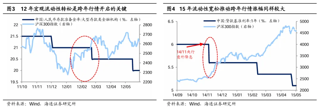 海通证券总结了2005年以来跨年行情的触发因素,发现基本面或流动性改善是核心,同时政策事件也是重要推动力。