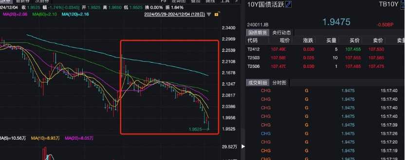 10年期国债收益率本周一(12月2日)创下自2002年以来新低,正式跌破2.0%,步入了“1”字头时代。12月5日,10年国债活跃券进一步下行0.5BP,跌破1.95%,续刷历史新低。