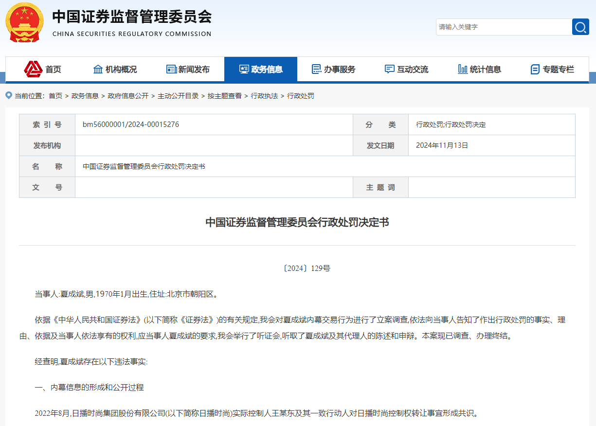证监会重罚内幕交易:夏成斌被罚超2800万元