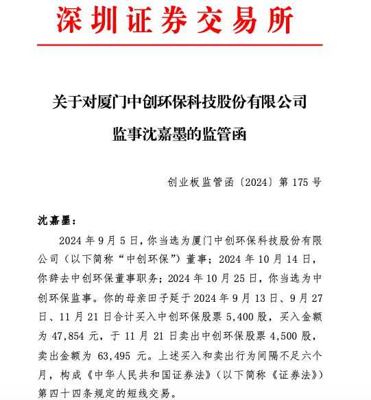 深圳证券交易所对弘信电子、香农芯创及中创环保三家公司董监高人员的近亲属因违反《证券法》规定,构成短线交易的行为发出监管函,要求相关人员充分重视,及时整改,避免类似问题再次发生。