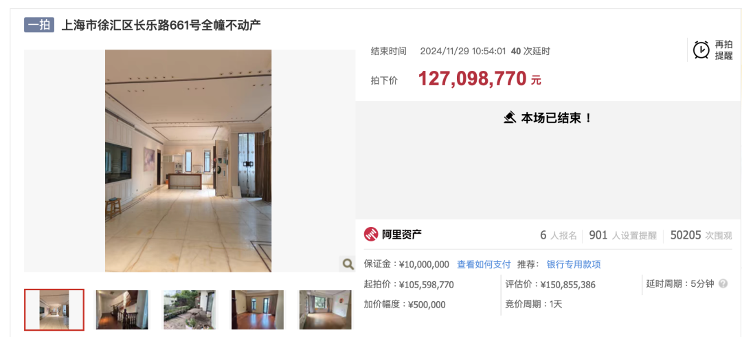 在单价方面,11月最贵的法拍住宅成交价为1.27亿元,单价超过24万元/平方米,成为市场焦点。