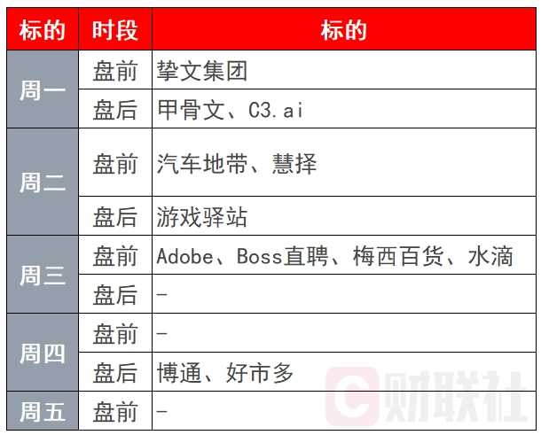 对中国投资者而言,下周同样关键。除CPI和出口数据外,市场还期待年末重要经济政策的出台。在美股市场,虽然下周并非财报旺季,但甲骨文、博通、C3.ai等与AI产业密切相关的公司将发布财报,这些公司的表现可能对AI概念股的炒作产生影响。同时,Adobe也需要在AI领域为自己正名。