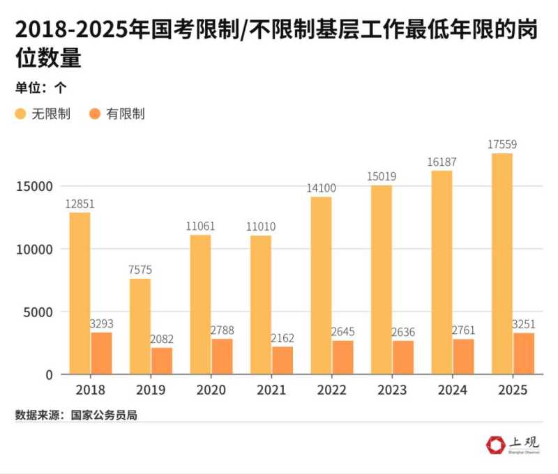 近年来,国考对应届生的倾斜趋势愈发明显,2025年国考近7成岗位计划招收应届生。同时,约84.5%的岗位不限制基层工作最低年限,为应届生提供了更多就业机会。