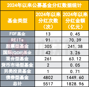 分基金类型来看,债券型基金在分红中占据主导地位。截至12月4日,今年以来债券型基金分红次数达到4802次,分红金额高达1449.60亿元,分别占总次数和总金额的87.04%和79.26%。