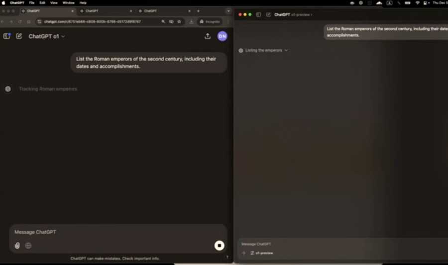尽管在速度上有所提升,但现场演示中o1正式版回复速度仍有待提高。例如,当被问及“列出公元2世纪期间,罗马皇帝的在位时间和历史成就”时,o1正式版反应时间长达18秒,虽较预览版的34秒有所缩短,但仍需改进。不过,其答案的准确性却超过了GPT-4o。