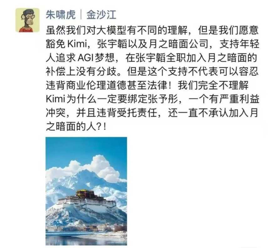 Kimi创始人杨植麟回应朱啸虎炮轰:力挺张予彤,强调已获董事同意