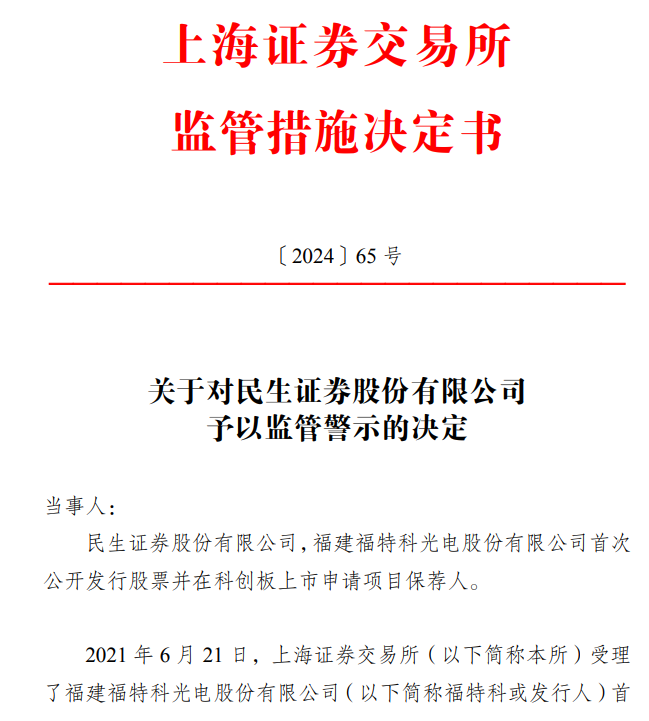 【导读】民生证券与容诚会计师事务所因福特科项目IPO撤单事件,被上交所监管警示。