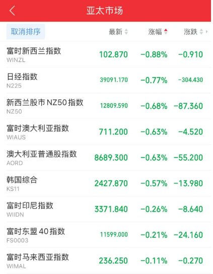 然而,与亚太市场的普遍下跌形成鲜明对比的是,日经指数和韩国股市分别下跌了0.77%和0.57%。