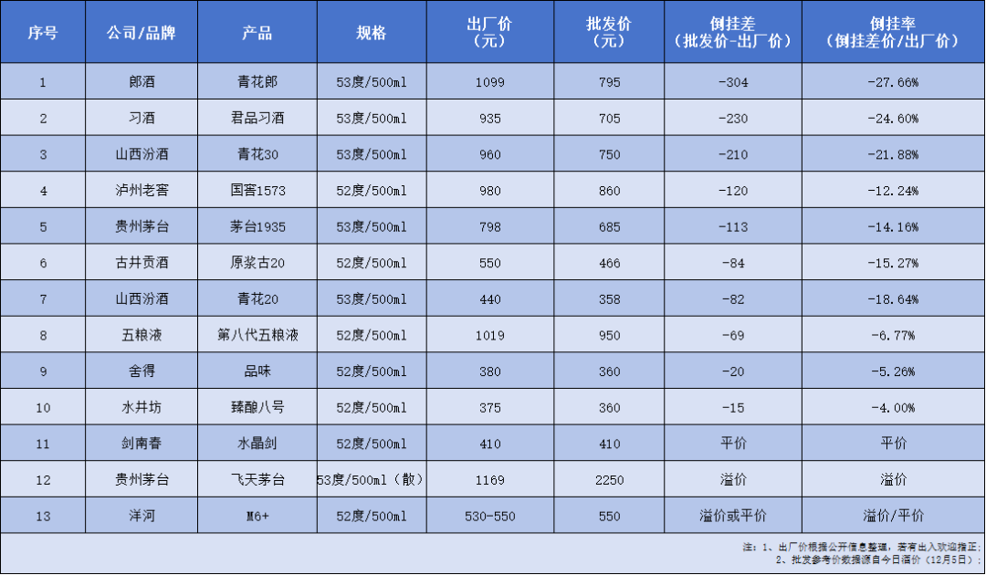 这一现状不仅冲击了消费者的信心,也阻碍了酒企的发展。为了深入探究市场倒挂的真相,《国际金融报》记者对白酒行业的13款代表性产品进行了统计分析。