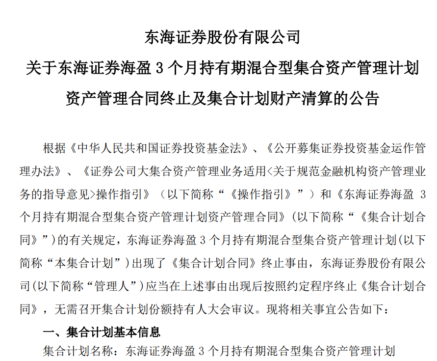 紧随其后,12月6日,国海证券也公告其国海六个月滚动持有债券型集合资产管理计划终止及清算。据公开资料,该计划同样因合同期满而触发终止。