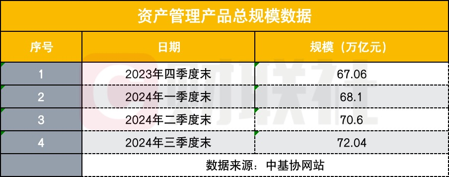 财联社12月7日讯 中基协发布了公募2024年三季度资产管理产品的统计数据。