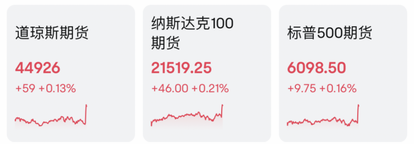 受此影响,美股股指期货出现小幅拉升,截至21:40,道指期货、纳斯达克100指数期货和标普500指数期货分别上涨0.13%、0.21%和0.16%;同时,美元指数短线下挫,现货黄金则短线走高,日内涨幅达0.51%。