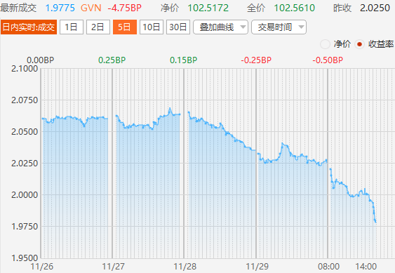 新华财经北京12月2日电 12月首个交易日,国债市场迎来重大变动,十年期国债收益率跌破2%大关,达到1.9775%,正式迈入“1时代”。与此同时,30年期国债收益率也紧随其后,跌破2.2%,直逼9月份所创低点。