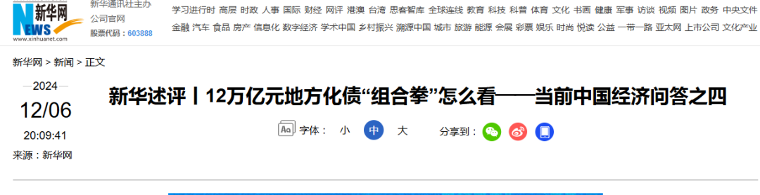 12月6日晚,新华社发布重磅文章《12万亿元地方化债“组合拳”怎么看——当前中国经济问答之四》。文章指出,在“十四五”规划收官之年,我国财政政策仍有较大发力空间。从国际比较来看,2023年末G20国家平均政府负债率为118.2%,G7国家为123.4%,而我国政府全口径债务总额为85万亿元,政府负债率为67.5%,明显低于主要经济体。同时,我国赤字率长期保持谨慎,大多数年份低于3%,地方政府债务还形成了大量有效资产,为经济高质量发展提供支撑。因此,我国政府杠杆率仍有较大提升空间,一系列积极政策正在紧锣密鼓地谋划推进。