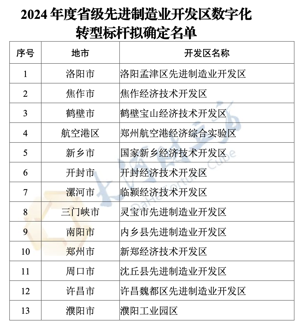 公示名单中,洛阳孟津区先进制造业开发区、焦作经济技术开发区、郑州航空港经济综合实验区等13个开发区脱颖而出,成功入选。这些开发区将作为数字化转型的标杆,引领全省先进制造业向智能化、高端化方向迈进。以下是具体名单: