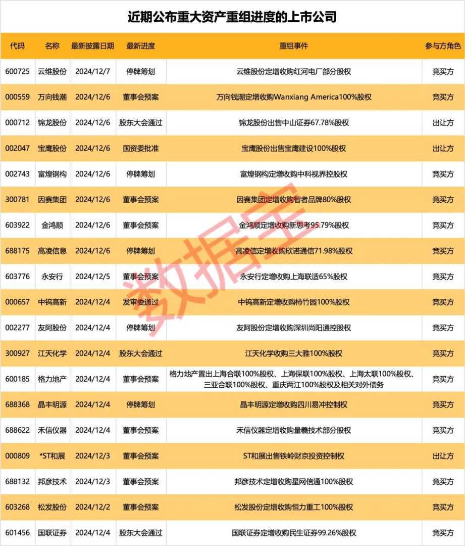 系列政策支持下,并购重组活动持续推进,近期19家上市公司纷纷披露了重大重组的最新进展。