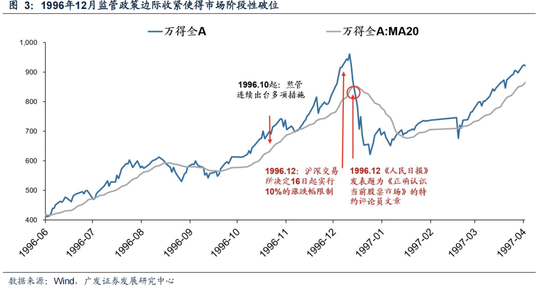 例如,1996年A股全面牛市,但12月因监管收紧预期回调。2019年4月央行货币政策收紧,市场回调。2006年7月地产政策收紧+央行上调准备金率,市场回调。