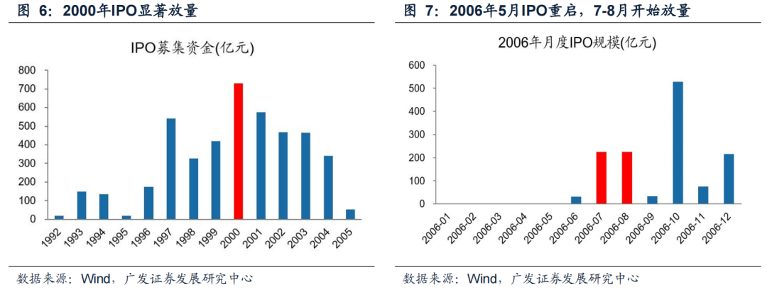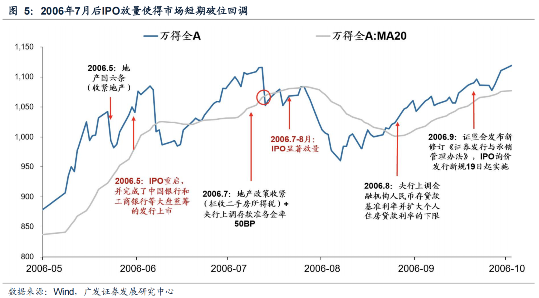 例如,1999年9月提高直接融资比重,市场担忧IPO放量而下跌。2006年5月IPO重启,7-8月IPO显著放量,市场下跌。