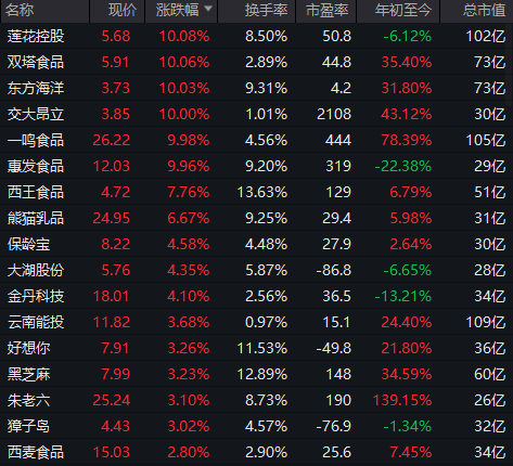 食品股方面,今日同样异动拉升,一鸣食品实现10连板,双塔食品、惠发食品、东方海洋等个股涨停。消息面上,国家信息中心公布的数据显示,10月份我国线下消费热度指数同比增长8.2%,增速连续两个月稳步提升。
