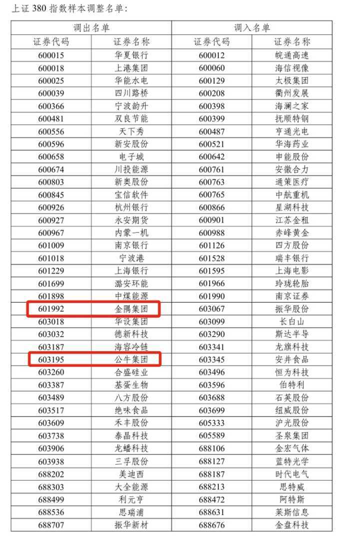 据上交所公告,经过指数专家委员会的审议,上海证券交易所与中证指数有限公司决定对上证50、上证180、上证380及科创50等指数样本进行调整,并将于2024年12月13日收市后正式生效。具体来看,上证50指数将更换5只样本股,上证180指数将更换18只,上证380指数将更换38只,而科创50指数则保持不变。其中,上证380指数的调整名单中明确提到了金隅集团和公牛集团的调出。