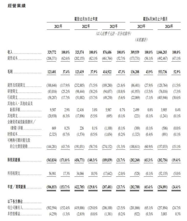 财务数据方面,布鲁可近年来收入有所波动,2021年至2023年分别为3.30亿元、3.26亿元和8.77亿元,同期亏损分别为5.07亿元、4.23亿元和2.07亿元。然而,今年上半年,布鲁可营收大幅增加至10.46亿元,期内亏损为2.55亿元。经调整净利润方面,去年扭亏为盈,达到7288.2万元,今年上半年更是达到2.92亿元。