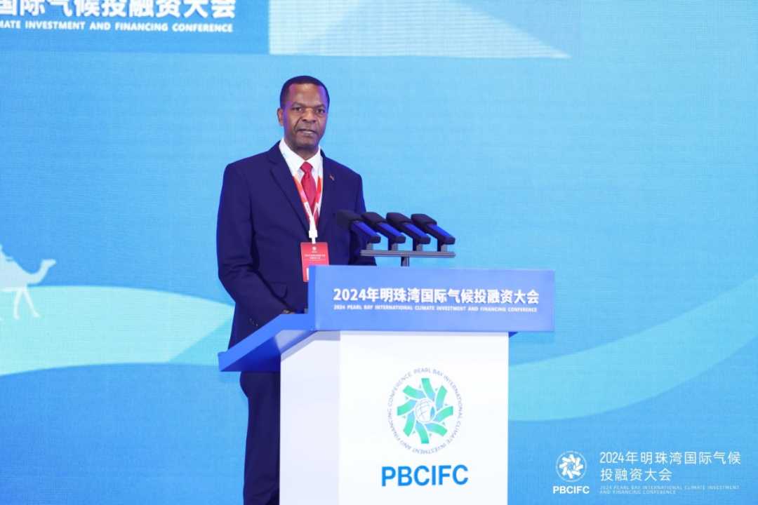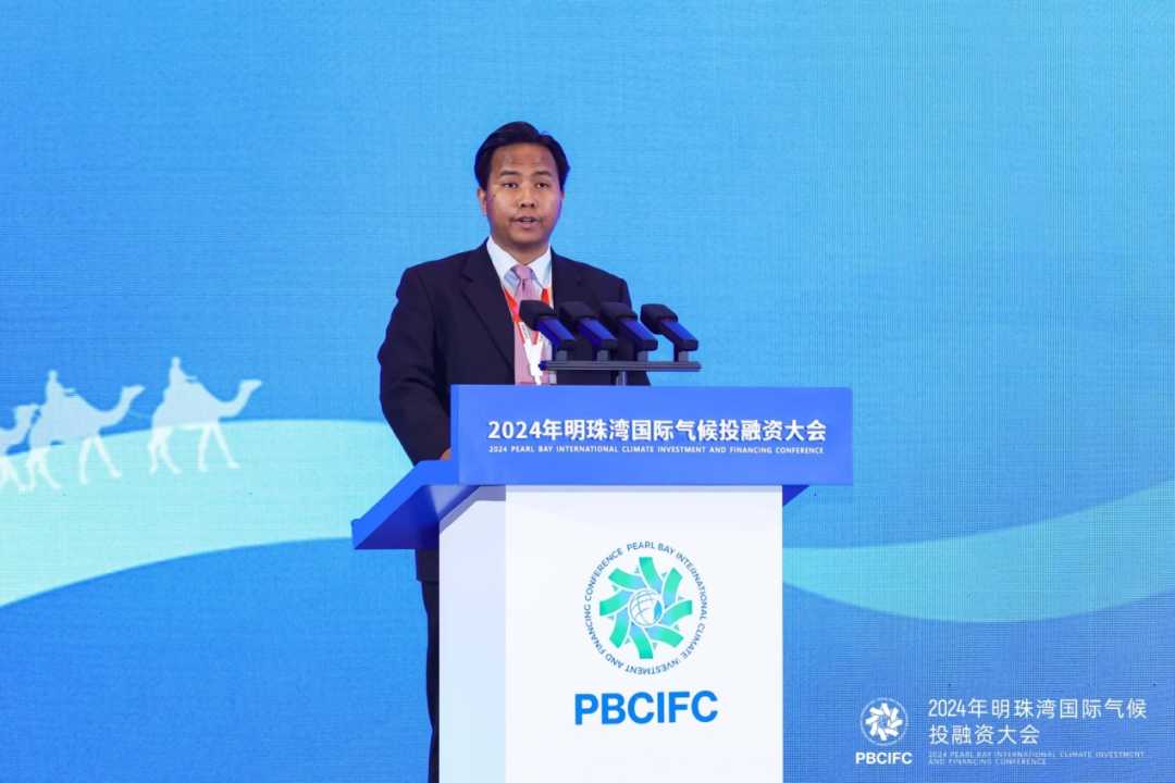 图为广东省生态环境厅气候变化与交流处处长洪建武发言。