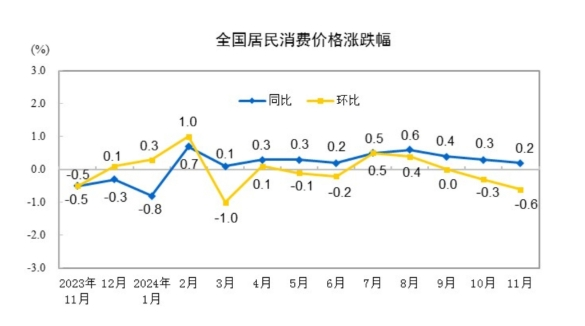 国家统计局12月9日发布数据显示,11月份全国CPI同比小幅上涨0.2%,PPI同比降幅收窄至2.5%。此外,2024中国城市生活体育指数榜单发布,成都、上海、北京居前三。