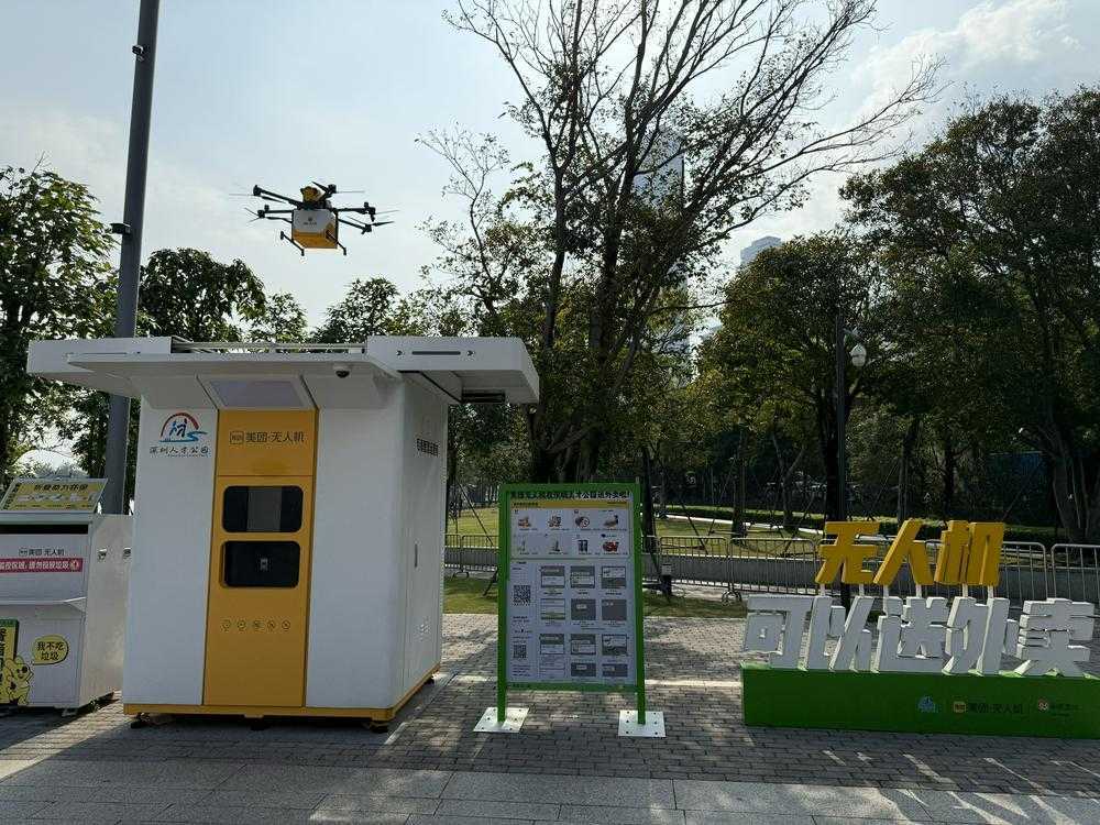 (深圳人才公园内的美团无人机外卖服务,财联社记者摄)