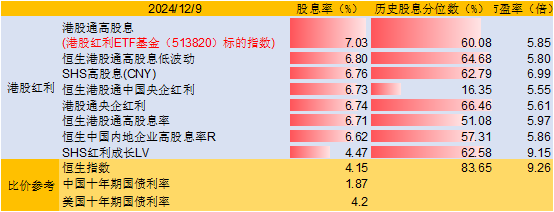 12月9日会议提出适度宽松货币政策,引发市场对红利资产配置价值的关注。港股红利ETF基金(513820)表现抢眼,股息率领衔全市场主流红利指数,成为投资者长期配置优选。