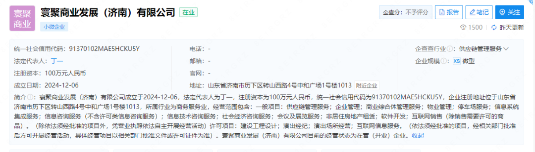 王思聪山东文旅新布局:济南寰聚公司注册成立